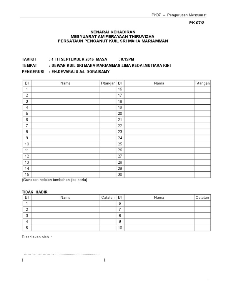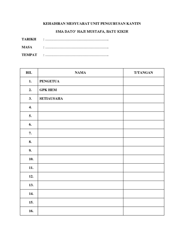 Kehadiran mesyuarat tertakluk kepada sop yang dikeluarkan oleh kerajaan dari masa ke semasa. Academia edu is a platform for academics to share research papers. Tapi kena tulis nama dan tandatangan kehadiran secara manual ketika mesyuarat. Jumlah kehadiran ahli mesyuarat perlulah tidak melebihi 250 orang.