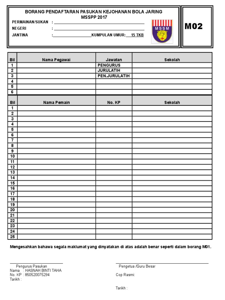 Borang pendaftaran pemain borang r01 2. Borang pendaftaran m01 m02 r01 dan r02 untuk guru. Borang m01 dan borang m02 borang pendaftaran merentas desa rasmi borang m01 individu.