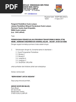 Borang pengecualian ptm. Borang pq o uitm bpd 13 14 bahagian latihan kompetensi jabatan pembangunan sumber manusia pejabat pendaftar uitm shah alam borang permohonan pengecualian daripada menghadiri semula program transformasi minda ptm nama staf. Borang permohonan pengecualian daripada menghadiri semula. Sehubungan dengan itu bersama sama ini disertakan 2 1 surat pengesahan perlantikan 2 2 borang 2 2 3 borang 5 2 4 lampiran a 2 5 lampiran c 2 6 set epsa splkpm. Saya seperti nama di atas pernah menghadiri program transformasi minda kursus induksi modul umum peperiksaan am kerajaan semasa menjawat jawatan sila nyatakan gred jawatan.
