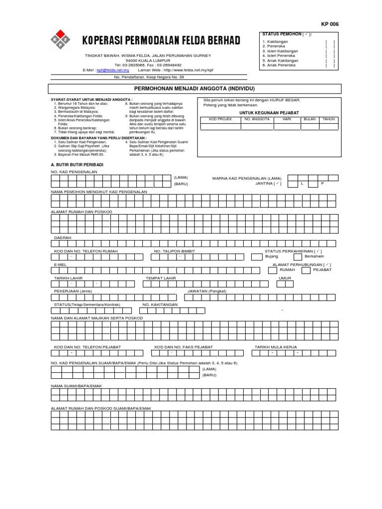 Sila isikan borang ini dengan menggunakan dakwat hitam biru. Soalan lazim kerjaya muat turun borang. Koperasi permodalan felda malaysia berhad. Sila download borang di link di bawah dan isi dengan lengkap dan hantarkan ke pej.