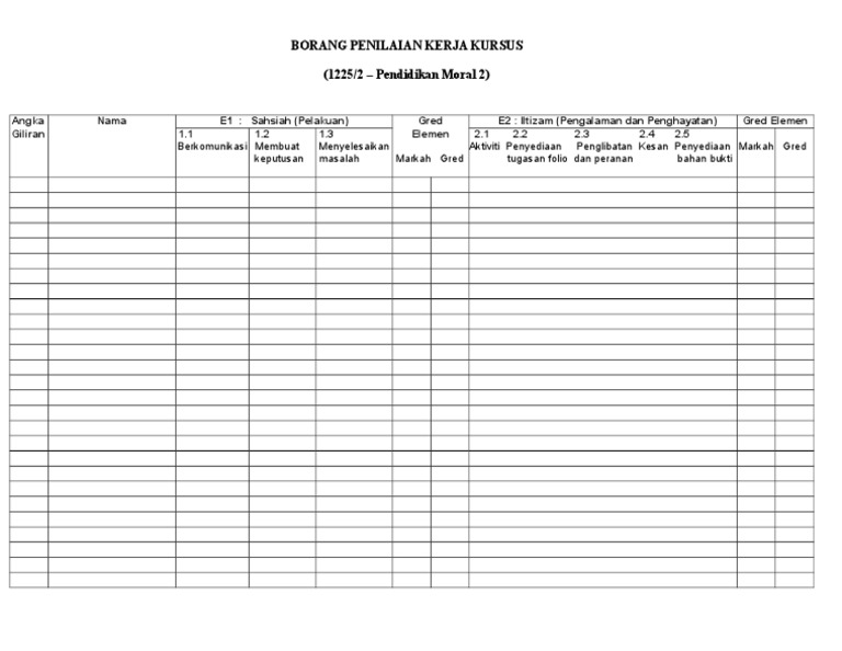 Borang Penilaian Kerja Kursus Pendidikan Moral Spm