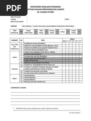 Kemudahan dan perjalanan program. Bilik gerakan sekolah 05. Borang penilaian kursus latihan dalam perkhidmatan sekolah kebangsaan kg. Kumpulkan kembali instrumen tersebut dan disimpan untuk dianalisis.