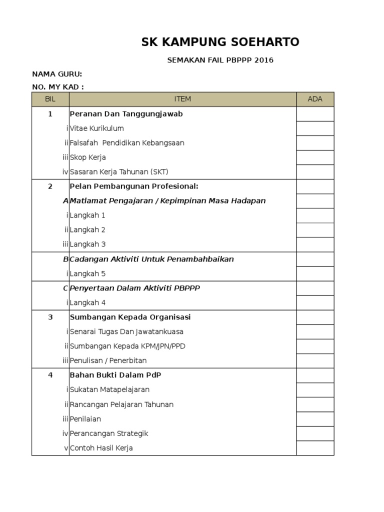 Sila download borang pemarkahan guru di sini e prestasi pbppp baru 8 nov 2013 xls download download juga nama pelajar mengikut kelas yang telah disedut dari apdm download pbppp simulasi guru gbk gkmp format excel sila edit bahagian yang berkenaan. Borang keberhasilan guru 2020 di malaysia jikalau dahulu kalangan guru di malaysia akan dinilai melalui sistem laporan nilaian prestasi tahunan lnpt. Pt a perlu mengemukakan dokumen berkaitan fail pelan pembangunan profesionalisme berterusan pppb sebagai evidens semakan bahan pbppp kepada pp1 pp2. Memastikan semua perjumpaan unit persatuan badan beruniform dan sukan permainan dilaksanakan mengikut jadual yang ditetapkan.
