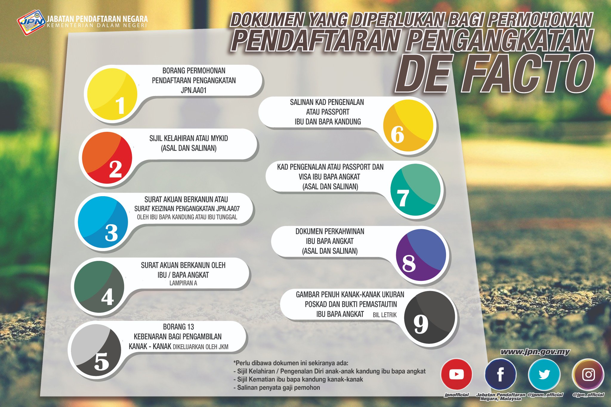 Telah dalam jagaan dan dipelihara serta dididik oleh seseorang atau pasangan sebagai anaknya yang berterusan atau anakmereka secara anak angkat de facto selama 2 tahun sebelum tarikh permohonan. 2 5 borang permohonan pendaftaran pengangkatan. Tidak digalakkan untuk mencetak dan menggunakan borang tersebut untuk berurusan. Tempoh permohonan akan dibuka sehingga 31 oktober 2020 dan pembayaran akan dibuat bermula pada julai hingga november 2020.