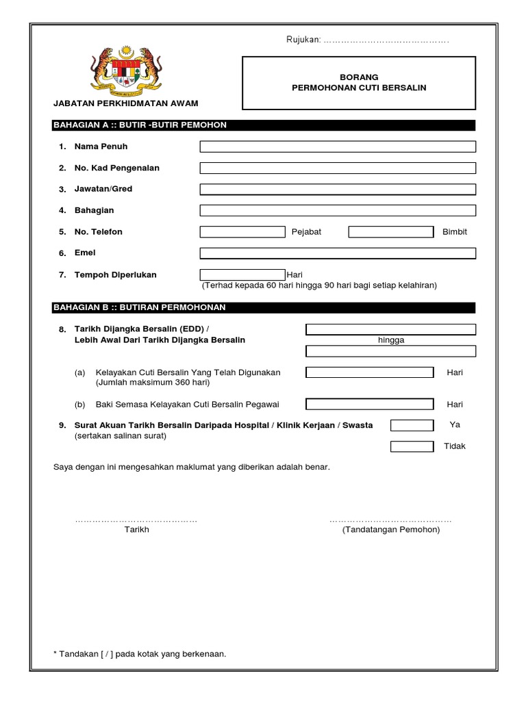Borang kemas kini februari 2018 1 borang permohonan cuti bersalin pekeliling perkhidmatan bilangan 5 tahun 2017 kepada.