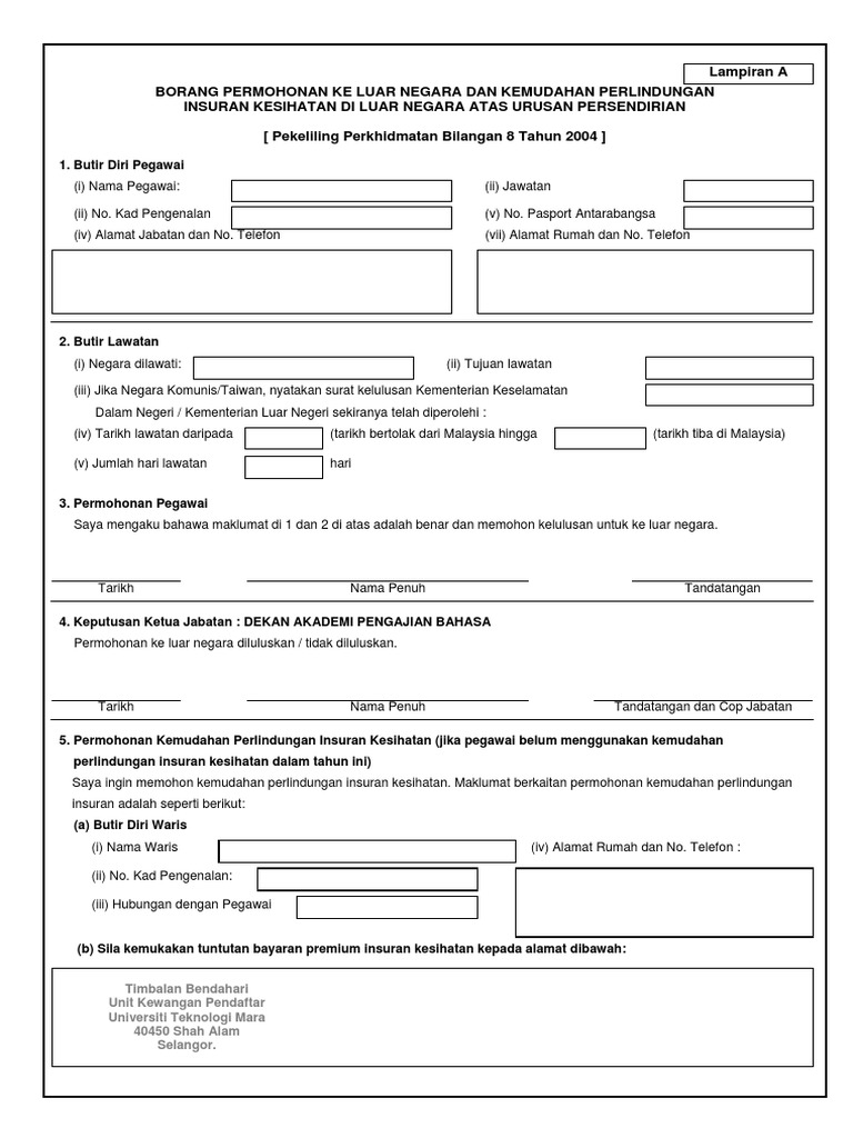 Maklumat hendaklah dilengkapkan dengan jelas dan menggunakan huruf besar. Permohonan keluar negara di bawah sek 38 1 c akta kebankrapan 1967 arahan jabatan bil 14 2016 mana mana. Borang permohonan perlindungan insurans kesihatan ke luar negara negara ketiga borang permohonan kemudahan perlindungan insurans kesihatan ke luar negara negara ketiga atas urusan persendirian di bawah pekeliling perkhidmatan bilangan 6 tahun 2015 arahan. Hingga negara yang dilawati.