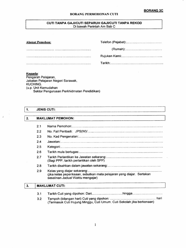 Permohonan cuti tanpa rekod cetakan disember 2017 maklumat pegawai nama penuh. Permohonan cuti rehat yang telah diluluskan jika ada. Borang permohonan cuti tanpa gaji separuh gaji jkn.
