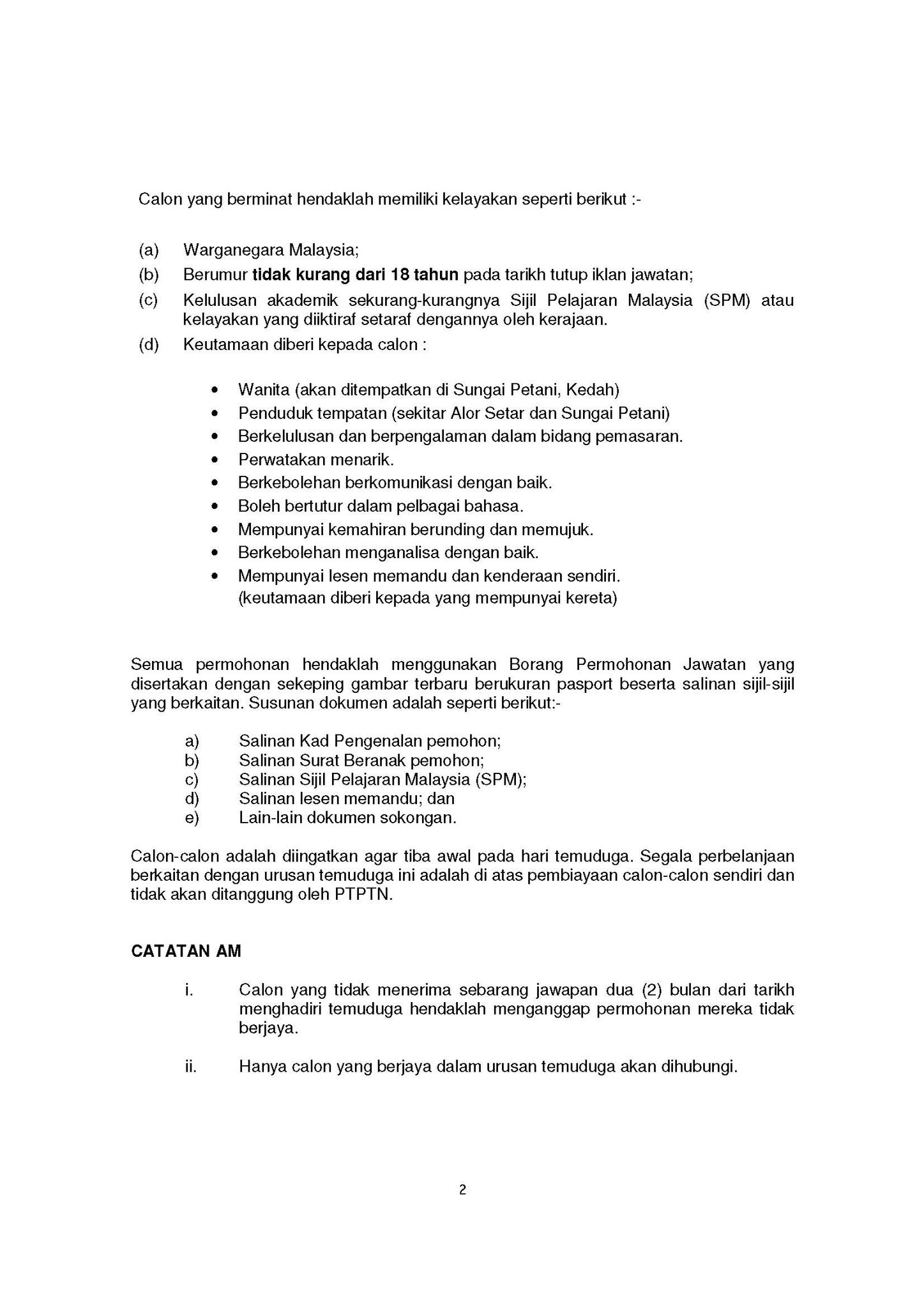 Bagi memaklumkan hasrat untuk membatalkan perjanjian dan penolakan pinjaman pendidikan kerana dapat penaja lain atau berhenti gagal pengajian. Saya adalah dengan ini membenarkan pihak ptptn memproses dan mendedahkan data peribadi saya bagi tujuan permohonan kerja di ptptn. Untuk makluman anda mulai september 2015 telah ditetapkan semua penjawat awam yang menerima pinjaman ptptn diwajibkan untuk membuat bayaran balik pinjaman melalui potongan gaji secara bulanan. Berikut merupakan maklumat iklan kerja kosong yang ditawarkan oleh majikan terlibat.