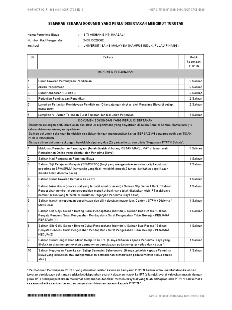 Nombor surat tawaran 2019 05013317 tarikh surat tawaran 07 10 2019. Hendaklah dibuat pada surat tawaran pinjaman dengan mengisi borang perubahan maklumat pelanggan boleh diperolehi di dalam laman web ptptn www ptptn gov my. Borang bon tanggung rugi pulangan lebihan bayaran balik pinjaman ptptn. Taip dan print sahaja.