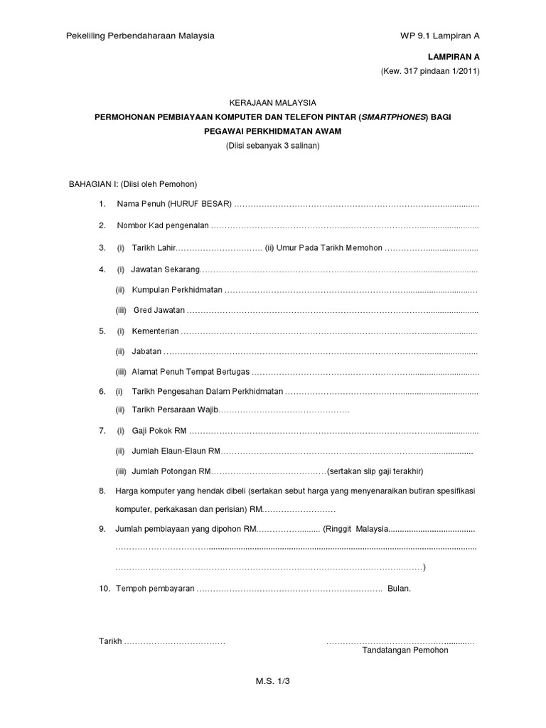 Telefon pintar smartphones 2 3. 1 salinan kad pengenalan 2. Agi permohonan pinjaman komputer. Permohonan pembiayaan 6 1 permohonan hendaklah dibuat dengan menggunakan borang permohonan pembiayaan komputer dan telefon pintar smartphones anggota perkhidmatan awam borang kew.