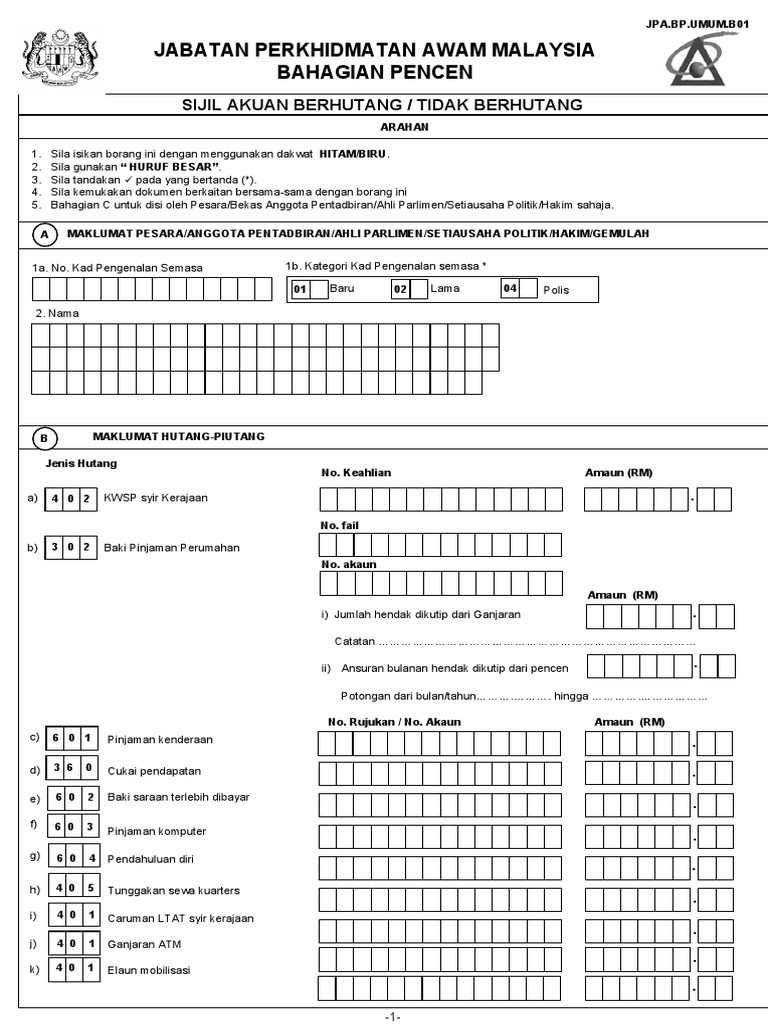 Diisi oleh pemohon. B pembiayaan tidak diluluskan. 8 25 2009 3 11 39 pm. Portal rasmi jabatan perkhidmatan awam jpa.