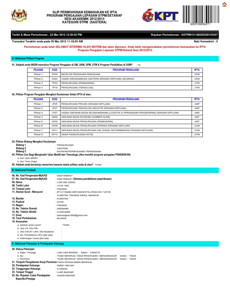 Adalah dimaklumkan bahawa borang permohonan tuan puan telah diterima dan dalam pertimbangan kami. B dapatkan sokongan pengesahan daripada ketua pusat tanggungjawab dan hantar borang berkenaan ke pejabat bursar. Matrik jika ada supaya ianya dicetak pada slip deposit cimb bank. Atau ii borang permohonan pembiayaan komputer telefon pintar smartphones bagi pegawai upm sok kew br019 byr.