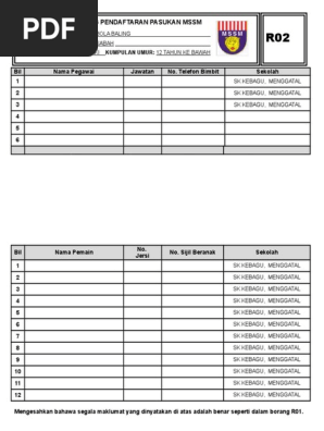 Kampung l dan. Borang r02 borang pendaftaran pasukan download borang 1. Perempuan kumpulan umur 12 tahun bil nama pegawai jawatan 1. Bola jaring mssc pintas puding 2014 sekolah jantina.