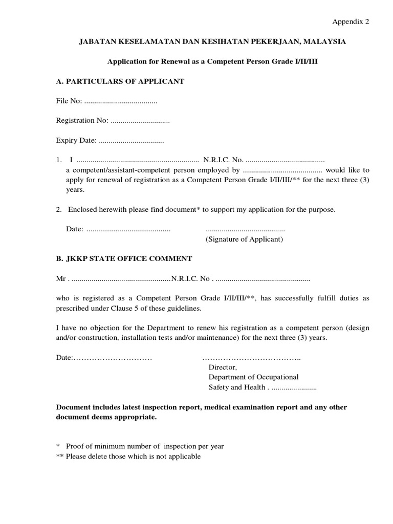 Borang renew jkkp. Sediakan dokumen seperti yang dikehendaki dalam. Tak silap sy jkkp suruh dia pergi exam balik untuk dapatkan sijil niosh yg baru. Jkkp 6 jkkp 8. Pemeriksaan kilang dan jentera akan dilakukan oleh.