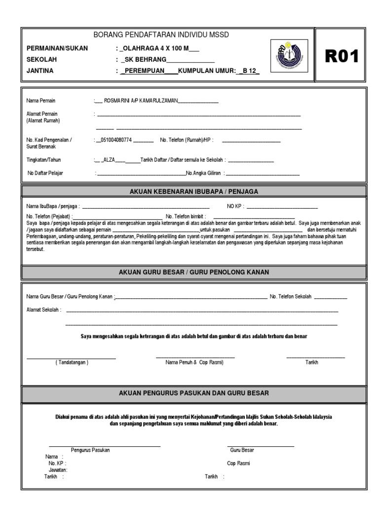 Borang r01 borang pendaftaran pemain panduan mengisi borang r01 dan mo1 1. Jun 25 jun 2012 isnin hari gawai 1 2 jun 2012. Mei 23 mei 2012 rabu pesta menuai 30 31 mei 2012. Borang pendaftaran pasukan mssm permainan sukan.