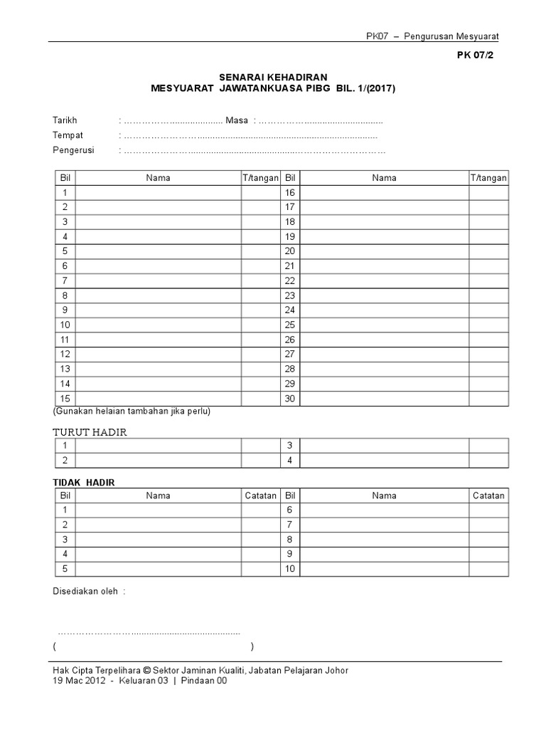 Bilik seminar ibnu khaldun smk batu sepuluh lekir pengerusi. Sila sertakan memo atau senarai kehadiran tarikh. Borang pk 07 2 senarai kehadiran mesyuarat 7 262 views. Newer post older post home.