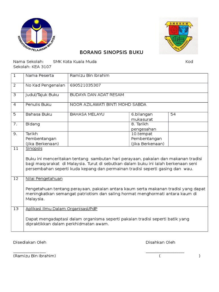 Borang Sinopsis Buku Latihan Dalam Perkhidmatan