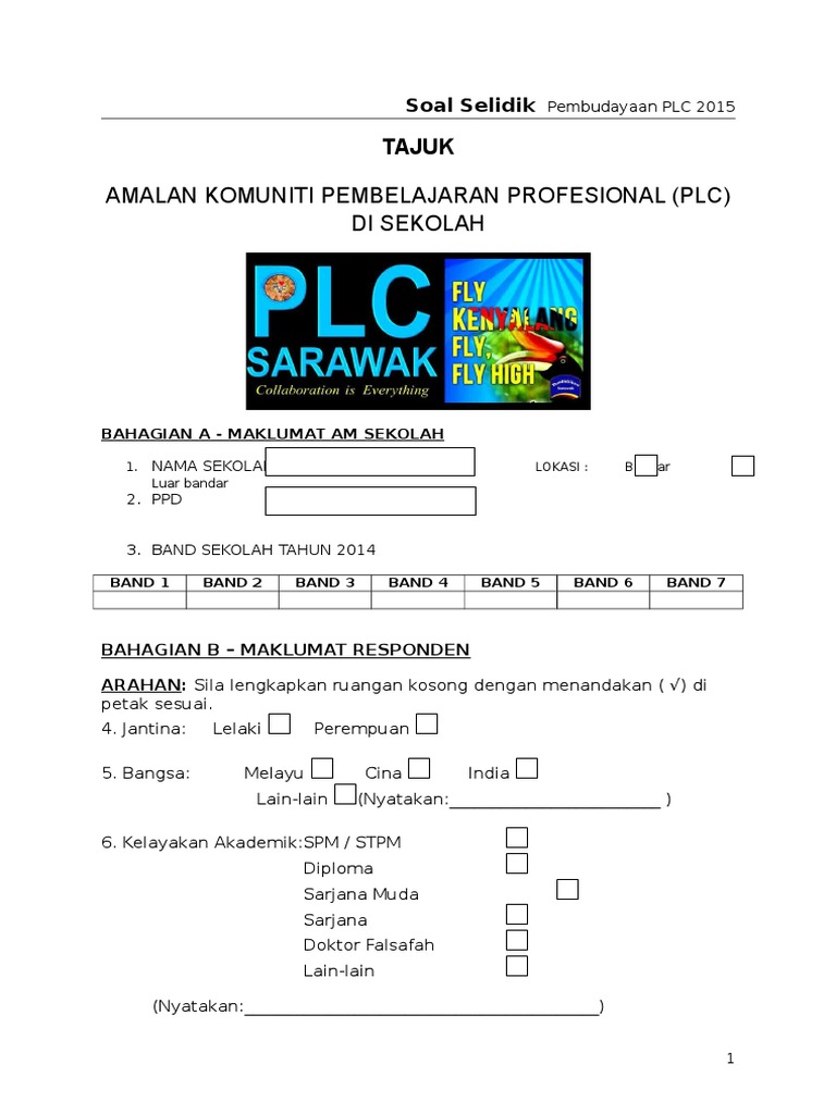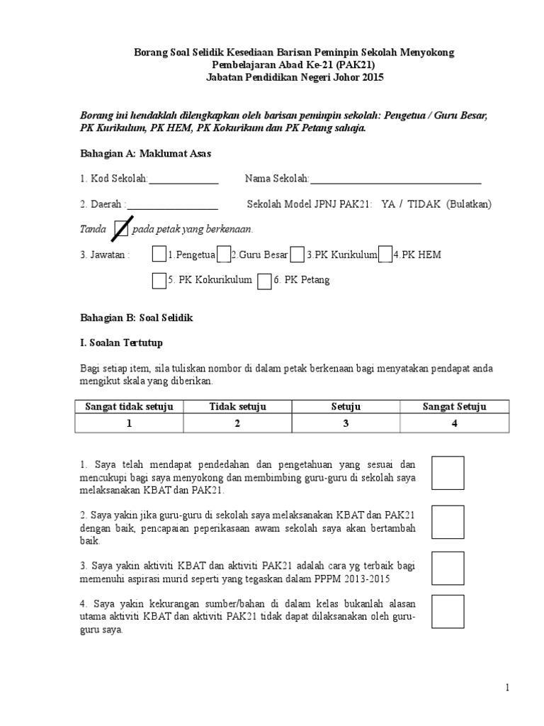 Contoh borang soal selidik pekerjaan contoh borang soal selidik produk contoh borang soal selidik contoh borang soal kaji selidik contoh borang soal selidik pengajian am contoh borang soal selidik pengangkutan contoh borang keberhasilan guru contoh borang penilaian contoh borang cuti pekerja contoh borang 49. Soal selidik ini adalah bagi memenuhi kerja kursus mata pelajaran pengajian am 900 4. Tujuan soal selidik ini adalah untuk mengumpul maklumat tentang impak komuniti pembelajaran profesional plc terhadap pengajaran dan pembelajaran di sekolah. Segala maklumat yang dikumpulkan hanya akan digunakan untuk tujuan kajian ini.
