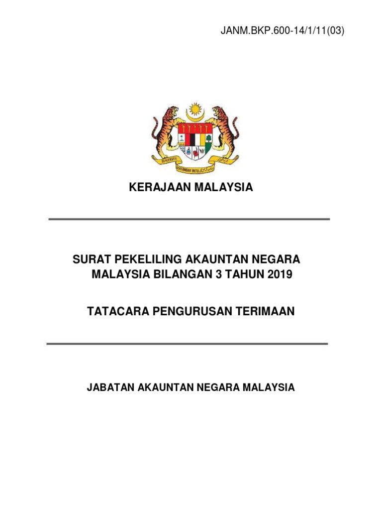 4 tahun 2019 tatacara pengurusan akaun deposit. Spanm bil 3 2019 tarikh penghantaran sijil pengesahan baki dan penyata penyesuaian terimaan bagi bulan mac 2020 atau bulan seterusnya adalah dalam tempoh 14 hari selepas tamatnya tempoh pkp 1 3 spanm bil 15 2014 tatacara perakaunan akaun amanah sijil pengesahan baki dan penyata penyesuaian amanah dikemukakan oleh ptj kepada ao. Edaran spanm bil 3 tahun 2019 tatacara pengurusan terimaan dan spanm bil. 3 2019 lampiran c a kerajaan malaysia surat pekeliling akauntan negara malaysia bilangan 3 tahun 2019 tatacara pengurusan terimaan jabatan akauntan negara malaysia janm bkp 600 14 1 11 03.