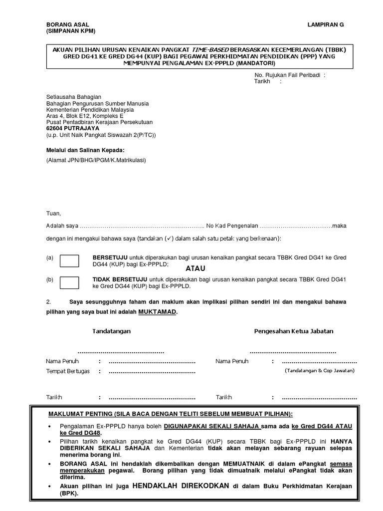 Borang tbbk 2. Epangkat aplikasi dalam talian online bagi membolehkan pengguna memohon dan memproses sesuatu urusan pemangkuan kenaikan pangkat bagi pegawai perkhidmatan pendidikan ppp dan anggota kumpulan pelaksana akp di bawah kementerian pendidikan malaysia kpm 2. Bpsmkkr 2 kkr bpsm tbbk g1 permohonan kenaikan pangkat secara time based berasaskan kecemerlangan kali pertama tbk1 bagi pegawai kumpulan pelaksana perkhidmatan gunasama persekutuan yang berada di gred lantikan dan penempatan di bawah kementerian kerja raya 1. 18 01 2019 9 51am. Keputusan panel rayuan dinyatakan melalui borang penilaian semula.