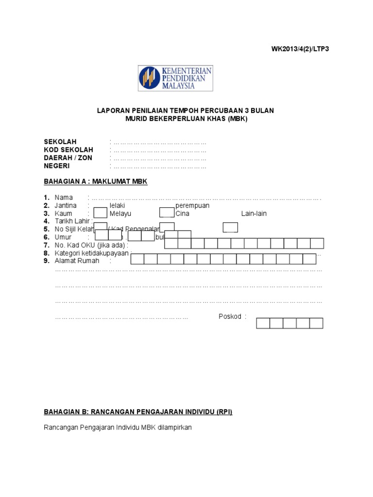 Borang laporan penilaian tempoh percubaan 3 bulan mbk 882 kb. Panduan tempoh percubaan tidak melebihi tiga bulan murid berkeperluan khas 2119 kb. Borang nyata bagi tahun taksiran 2019 tambahan masa dua 2 bulan dari tarikh akhir pengemukaan bn dibenarkan bagi yang mempunyai tempoh perakaunan berakhir 31 julai 2019 hingga 31 ogos 2019. Saya tempoh percubaan saya sepatutnya berakhir pada 14 04 2013 tempoh percubaan 3 bulan.