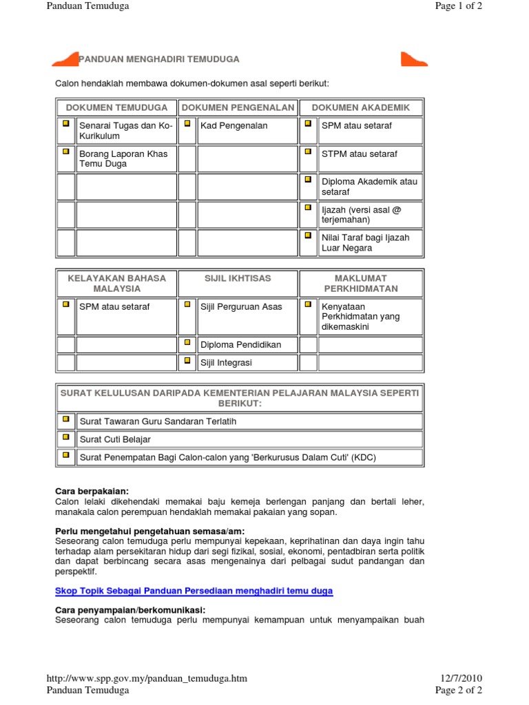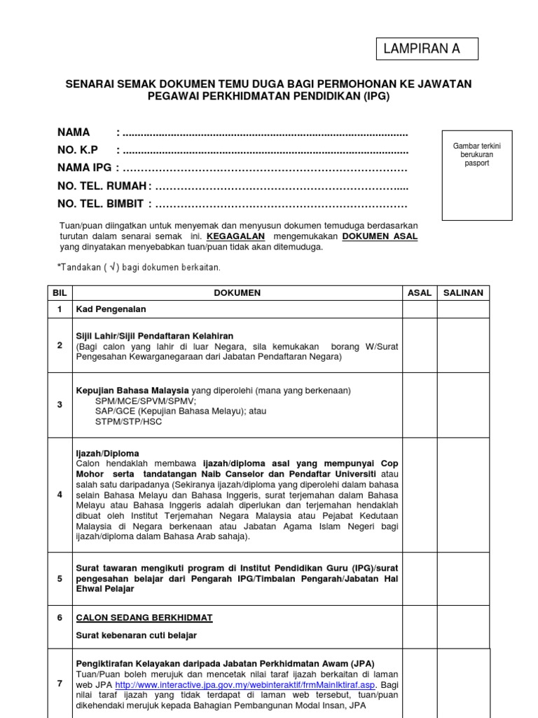 Borang temuduga spp. Senarai semak dokumen temu duga bagi permohonan ke jawatan pegawai perkhidmatan pendidikan. Maklumat kekosongan ini adalah seperti yang diiklankan. Pemohon dinasihatkan supaya membaca terlebih dahulu maklumat jawatan di portal spp sebelum memohon bagi mengelakkan pemohon memohon jawatan yang tidak berkaitan dengan kelayakan yang dimiliki. Cara isi borang membuat permohonan jawatan spp online pemohon yang telah berjaya log masuk sudah boleh mengisi borang myspp.