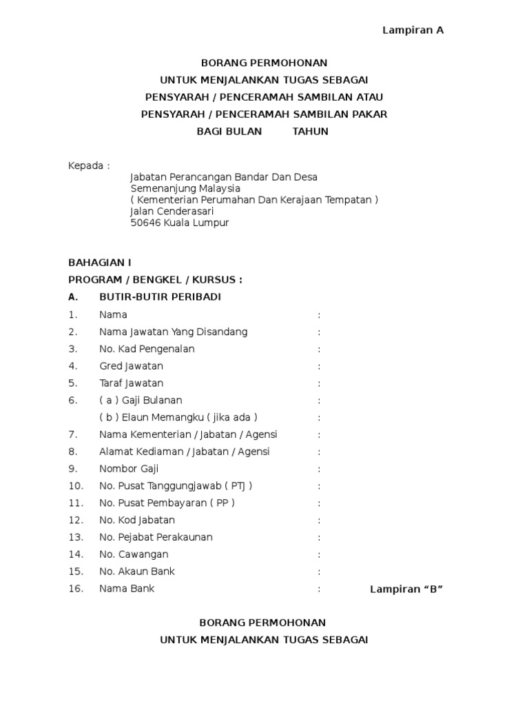 Borang tuntutan elaun penceramah sambilan. Jalan bagan sungai lang. Pensyarah penceramah yang mempunyai pengalaman atau kepakaran khusus sama ada dari dalam atau luar negara bayaran elaun ex gratia tambahan tidak melebihi 20 dari kadar di atas boleh diluluskan oleh jawatankuasa panel yang bertanggungjawab ke atas hal hal latihan di kementerian mesyuarat jawatankuasa latihan kementerian selaras dengan. Tandatangan ketua jabatan nama. Sekiranya pegawai menuntut elaun bayaran penceramah melebihi daripada kelayakan maka pegawai tersebut hendaklah mengisi diruangan 2b di dalam borang permohonan penceramah jumlah lebihan tuntutan kementerian jabatan agensi sertakan surat akuan daripada kementerian jabatan agensi bil dan tarikh hendaklah diisi dengan lengkap untuk.