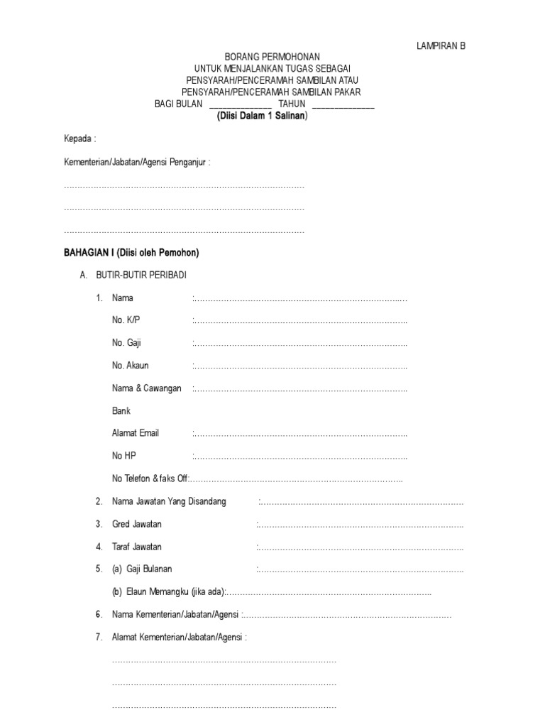 Kadar bayaran pensyarah penceramah dan fasilitator sambilan mengikut kadar kelayakan akademik rujukan. Borang tuntutan penceramah lampiran b di wp 1 8 surat jemputan sebagai penceramah.