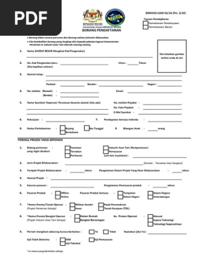 7 2 permohonan menggunakan borang uam 01 14 pin. 2 18 tujuan pendaftaran pemohonan pembiayaan permohonan geran perhatian. 8 1 khidmat nasihat teknikal dan latihan secara intensif melalui program. Borang uam 01 14 pin 02 18 berserta salinan kad pengenalan yang disahkan oleh pegawai jabatan agensi dan gambar berukuran passport.