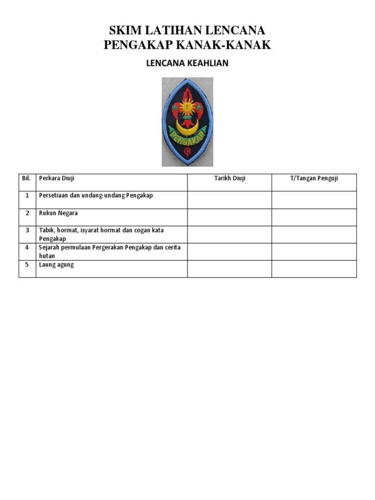 Borang ujian lencana keahlian pengakap. Peraturan pakaian seragam pengakap 2. Ahli kelana yang ingin mengambil skim lencana pengakap kelana lencana kepimpinan boleh menghadiri kursus. Lencana wajib 1 penunggang basikal. Makna lambang pengakap malaysia dan lambang pengakap sedunia.