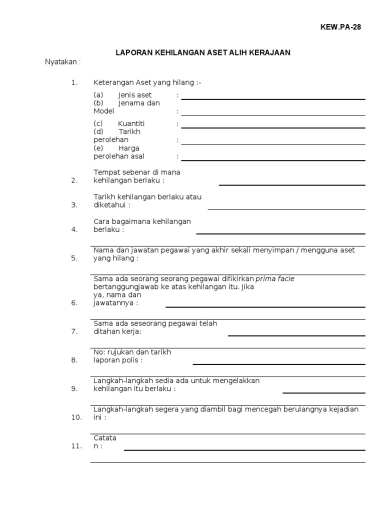 Kos penyelenggaraan terdahulu jika ada. Kew pa 9 borang aduan kerosakan aset alih kerajaan bahagian i untuk diisi oleh pegawai aset 1. Syor pegawai aset nama. Laporan pemeriksaan inventori kew pa 12.