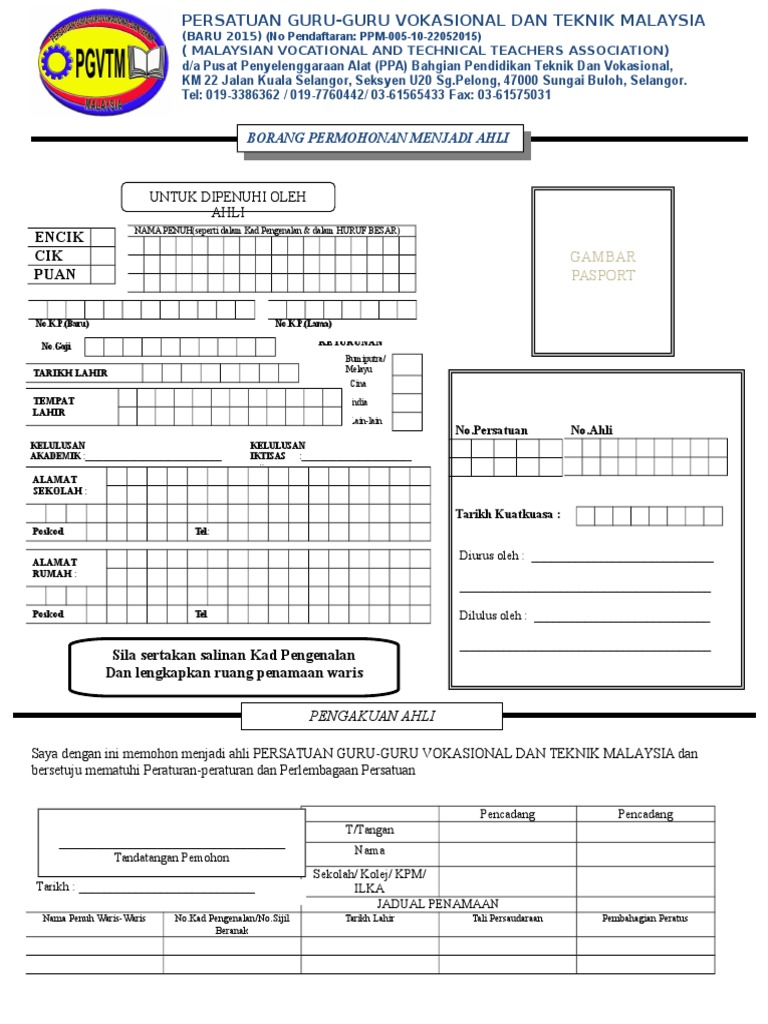 Contoh borang ahli persatuan. Di dalam laman sesawang ini juga terdapat borang pendaftaran ahli persatuan untuk perhatian para penduduk. Untuk pertimbangan saya dengan penuh keihklasan mengaku akan mematuhi sepenuhnya perlembagaan dan peraturan peraturan persatuan kelab. Sila gunakan huruf besar pada semua ruangan tanda x di ruang yang berkenaan nama penuh. Klik sini untuk download borang manual tuan puan boleh menghantar borang kepada ajk yang paling dekat dengan rumah.