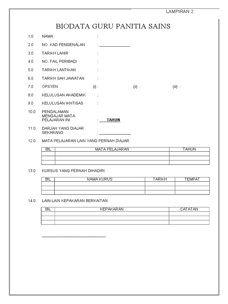 Contoh borang biodata guru panitia. Simpan simpan contoh borang biodata guru untuk fail panitia untuk nanti. Unduh sebagai doc pdf txt atau baca online dari scribd. Berikut merupakan bahan berkaitan dengan maklumat guru. 4 4 mendukung 0 0 menolak.