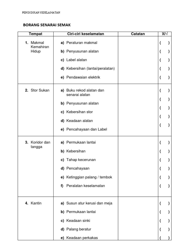 Contoh borang check list pemeriksaan kebersihan bangunan. Checklist kebersihan rumah sakit. Karusel sebelumnya karusel berikutnya.