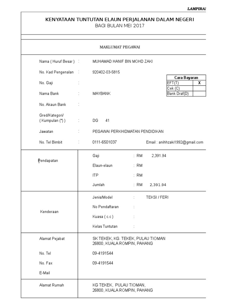 Contoh Borang Eft