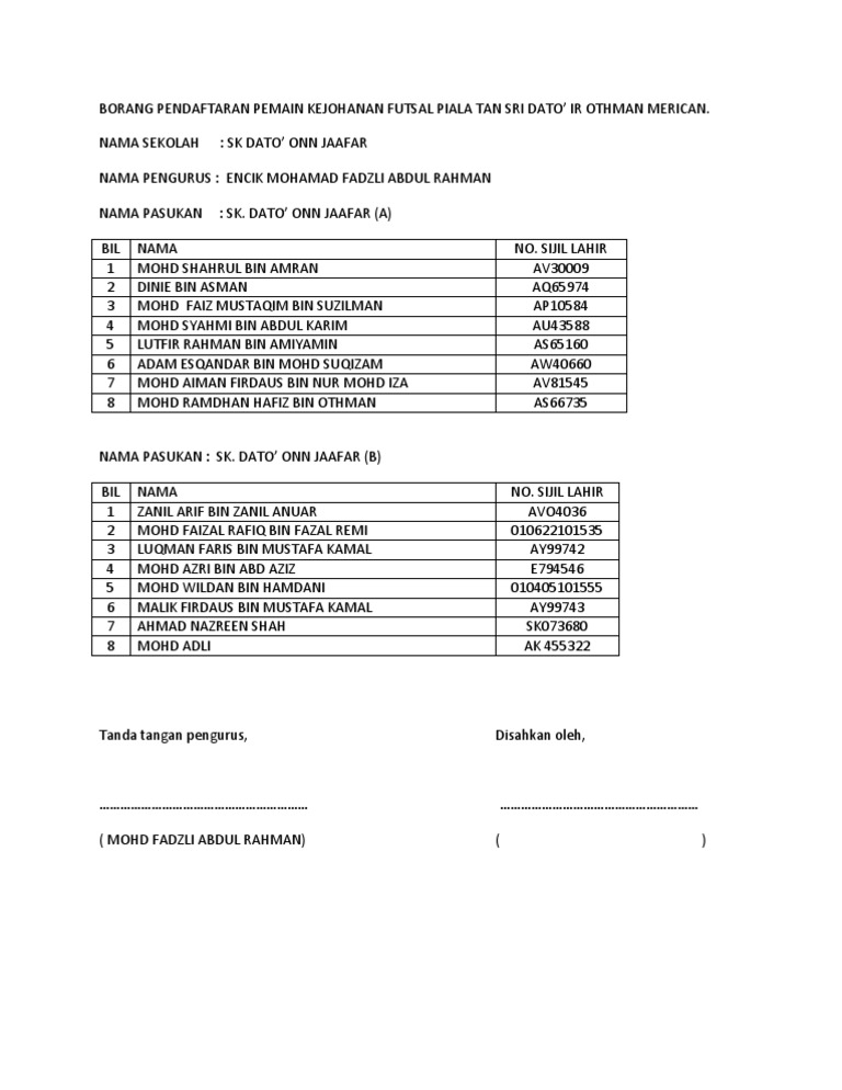 Contoh borang futsal. Dengan kata lain kita sebagai pelatih harus mampu membuat program latihan futsal yang baik sesuai dengan kemampuan pemain kita. Assg hortikultur 2011 autosaved download now. Sistem pertandingan dalam permainan futsal autosaved kertas cadangan kejohanan futsal. Contoh borang soal selidik futsal.
