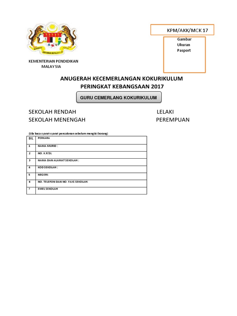 Surat pwngesahan pendaftaran dan no pendaftaran. Sila sesuaikan dengan situasi anda. Untuk tahun 2014 2015 dan 2016 10. Panduan mengisi borang guru cemerlang kokurikulum sm sr bilangan perkara 1 8 isikan maklumat dengan lengkap seperti yang dikehendaki 9.