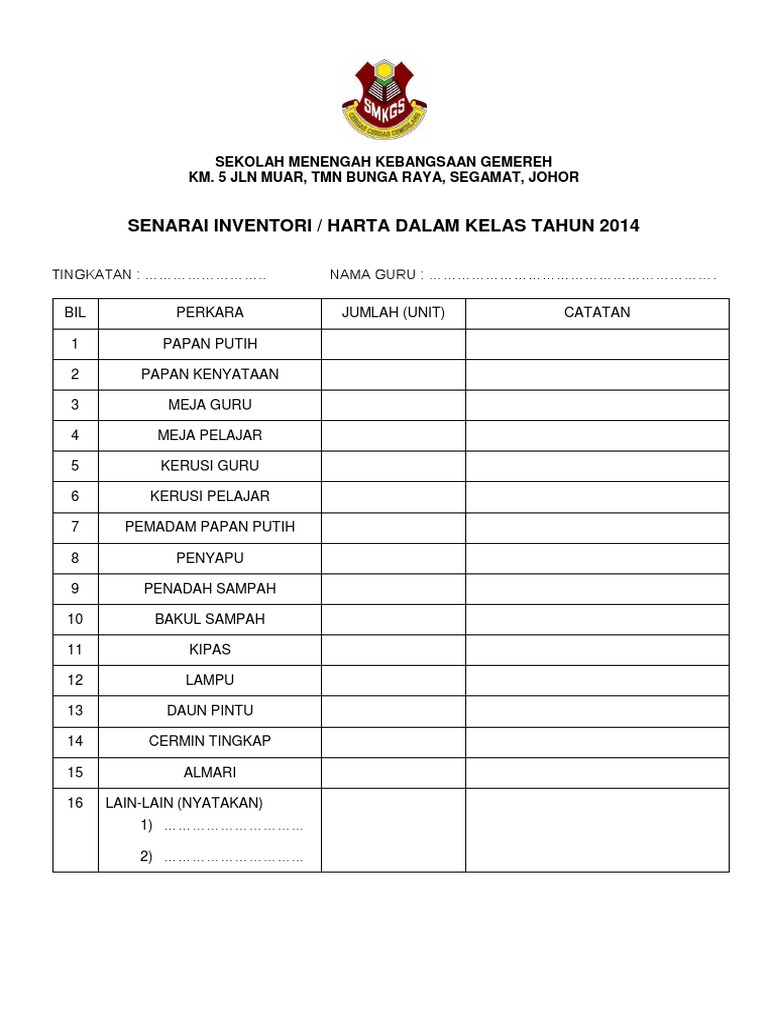Contoh borang inventori sekolah. Oleh itu jabatan perlu memberi nombor inventori bagi setiap borang inventori yang disediakan. Buku penerimaan dan pengeluaran barang ini hanya sebagai referensi yang mungkin anda butuhkan. 12 10 2008 1 30 00 am company. Puan fadzillah binti rahman unit belanjawan stor pusat pejabat bendahari utm definisi stor tempat bagi melaksanakan penerimaan perekodan penyimpanan penyelenggaraan pengendalian dan pengeluaran stok.