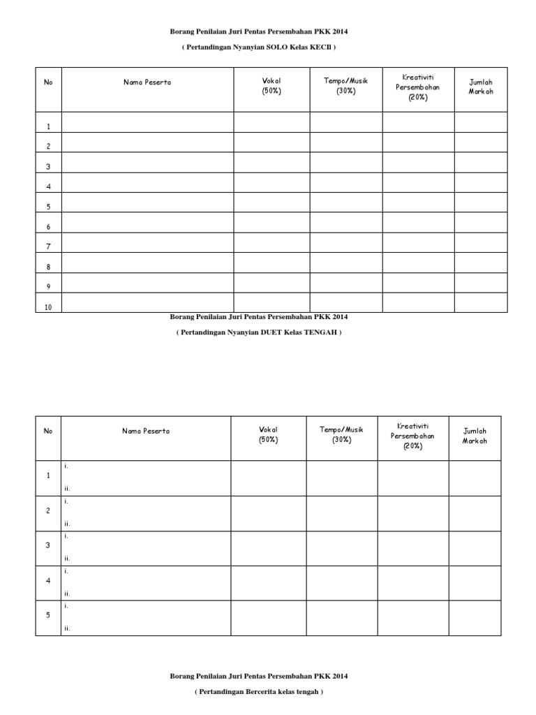 Contoh borang juri pertandingan karaoke. Hadiah yang ditawarkan berupa wang tunai dan piala iringan. Borang pemarkahan pertandingan battle of the band 2015 smk mat salleh. Dataran kajang stadium kajang maklumat lanjut sila hubungi. Borang penyertaan pertandingan karaoke suara emas ole ole 2017 tarikh.