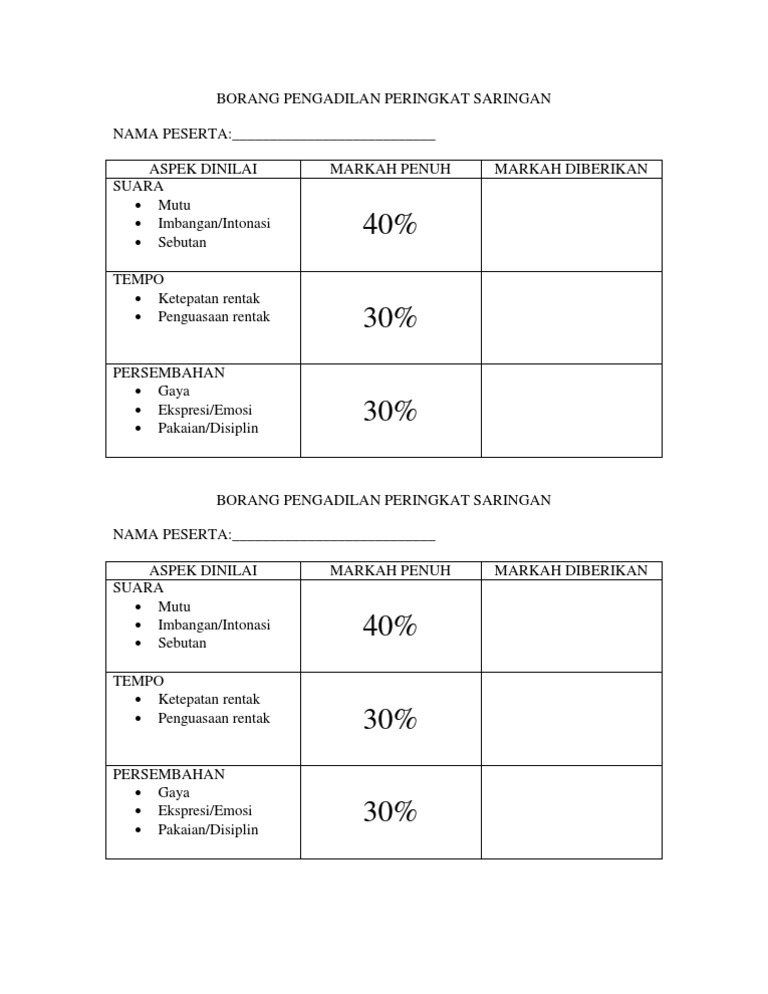 Borang markah pertandingan tarian. Nama peserta pic 20 m tempo 15 m sebutan. Cari di dalam dokumen. Gambar semasa ary menjadi juri pertandingan karaoke umall idol 3 di umall skudai johor pada 24hb jun 2012.
