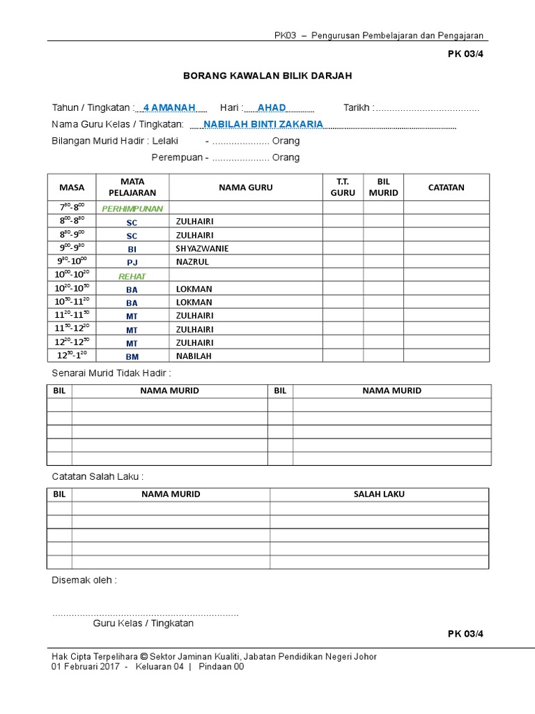 Contoh borang kawalan kelas. Jika masih penasaran berikut contoh surat permohonan bantuan untuk bahan pembelajaran daftar isi artikel1. Carousel previous carousel next. Save save borang kawalan kelas for later. Contoh surat akuan janji berkelakuan baik pelajar.