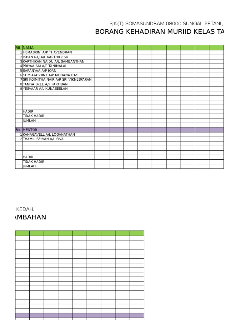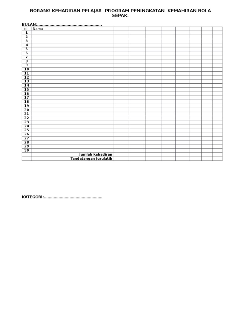 Contoh Borang Kehadiran Kursus