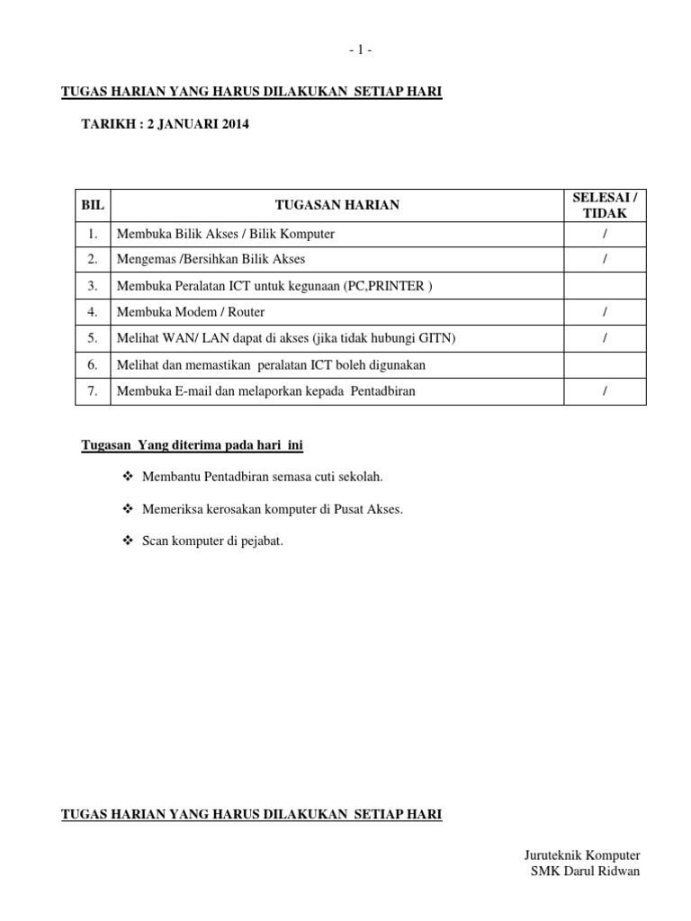 Contoh borang laporan tugasan harian. Jawapan lengkap untuk tugasan harian kerja kursus spm pend. Posted by mohd fazli at 21 09. Catatan agar laporan disertai dokumentasi nya dan dibuat laporan dalam bentuk buku laporan resmi. Hanya sbgi rujukan sahaja.