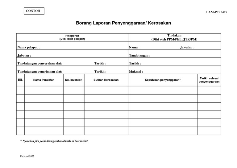 Contoh Borang Laporan