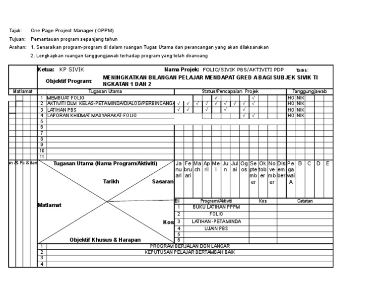 One page project manager lihat sini contoh tamplete oppm.