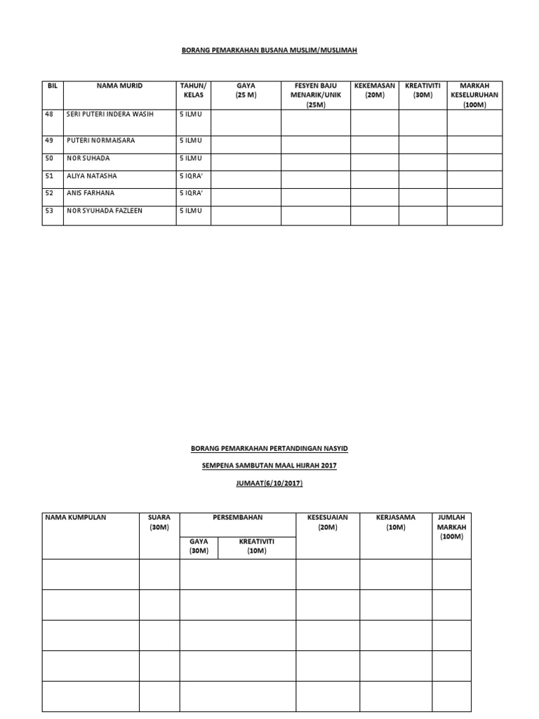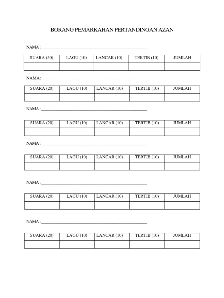 Contoh borang pemarkahan hafazan. Bonus akan diberi kepada peserta yang membaca dengan tarannum yang berbeza bagi setiap surah yang dihafaz. Tilawah jawi seni khat syarahan ba kuiz bercerita. Dib semester 2penilai. Isl 1012 surah yaasin kelas.