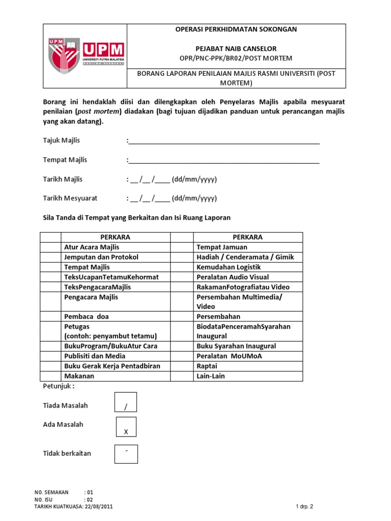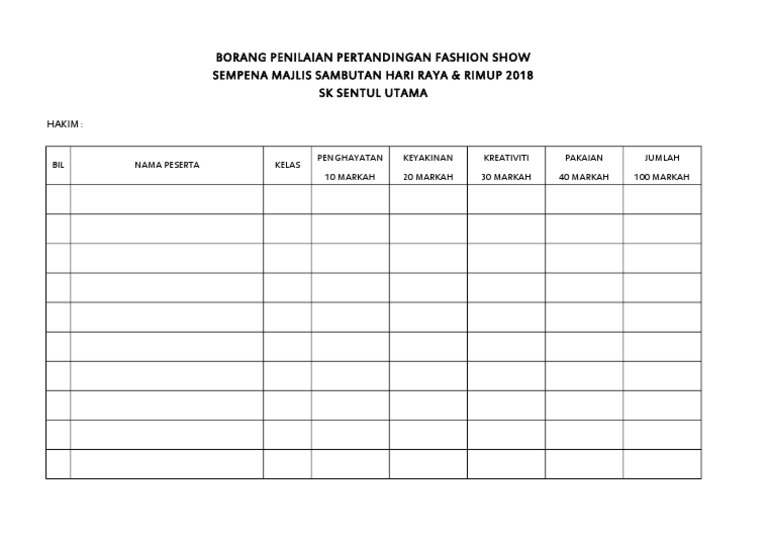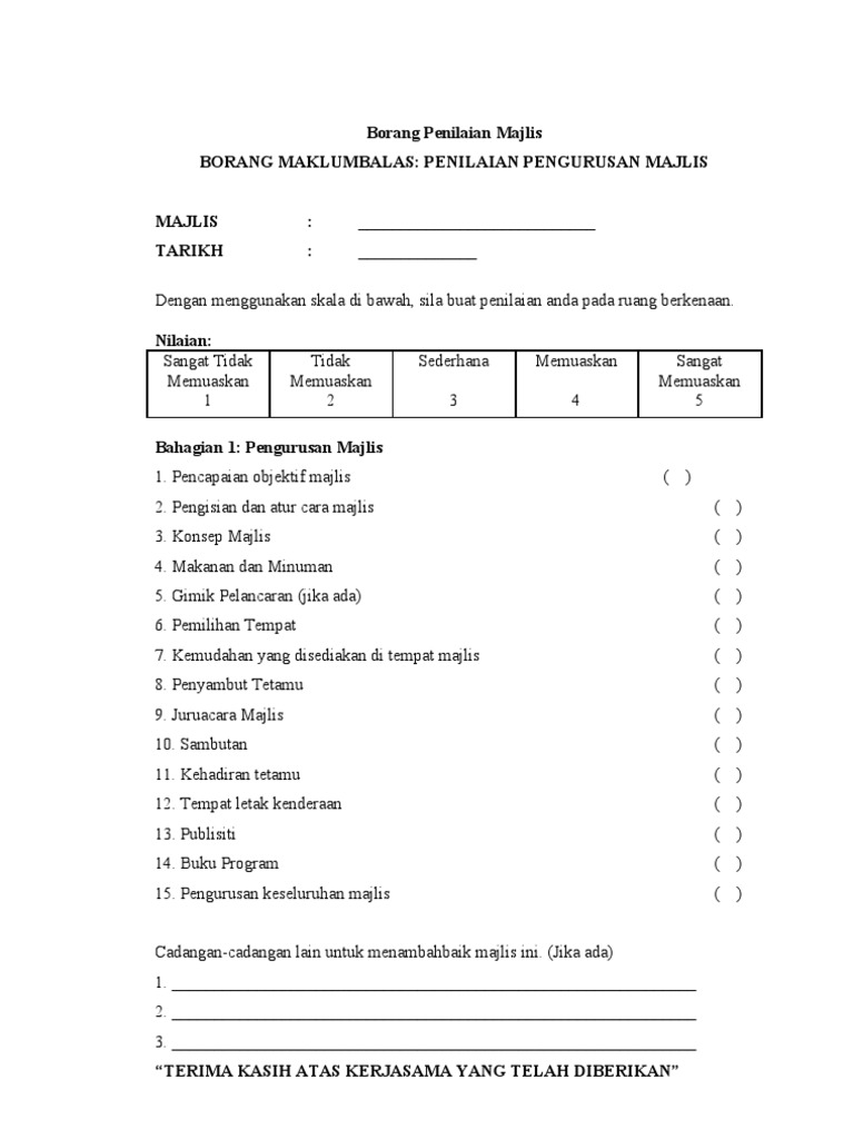 Contoh Borang Penilaian Majlis