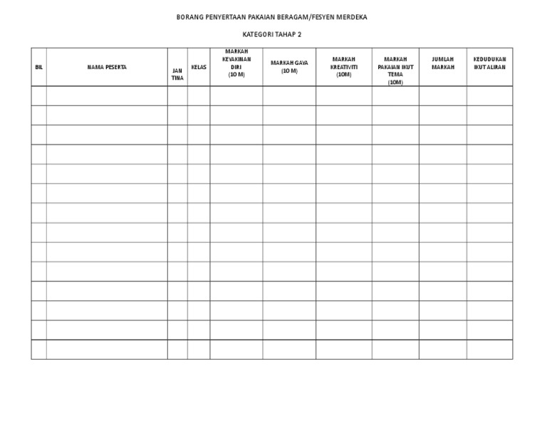Contoh Borang Penilaian Pertandingan Pakaian Beragam
