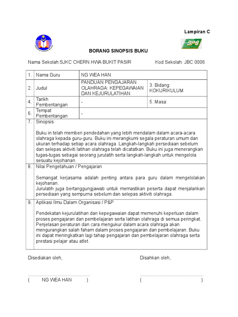 Contoh borang sinopsis buku lampiran c. Nama guru pengenalan pemikiran kritis 2. Pengukuran dan penilaian pendidikan. Sk dato onn jaafar. If you have any questions about copyright issues please report us to resolve them.