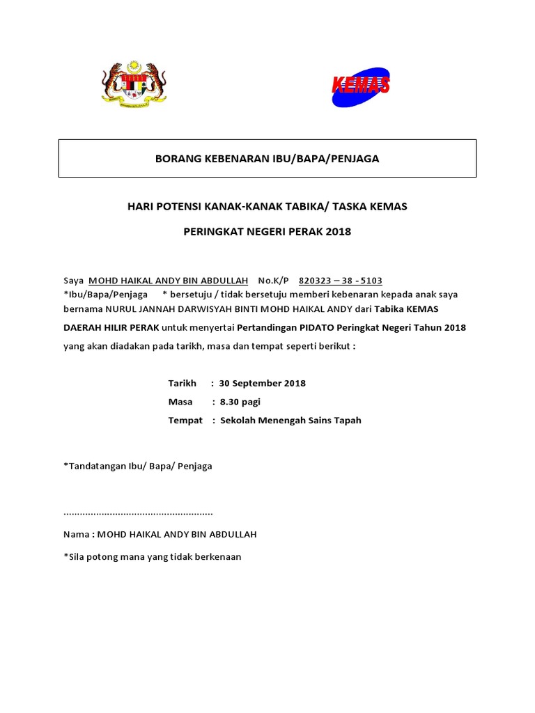 Borang pendaftaran yang telah lengkap diisi hendaklah dihantar terus ke tabika kemas beserta dokumen yang diperlukan. Pemohon perlu menyediakan dokumen seperti yang tertera di borang permohonan kemas. Borang yang telah lengkap perlu dinilai dan disenarai pendek menggunakan borang ru gpkkhas tbk bagi yang layak dan ru gpk tbk bagi yang tidak layak mendapat gpk khas arahan kepada jawatankuasa tabika kemas 1. 3 saya menjamin anak saya akan hadir ke tabika kemas pada hari hari yang.